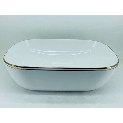 Chậu lavabo chữ nhật viền vàng LV 8524 LUX