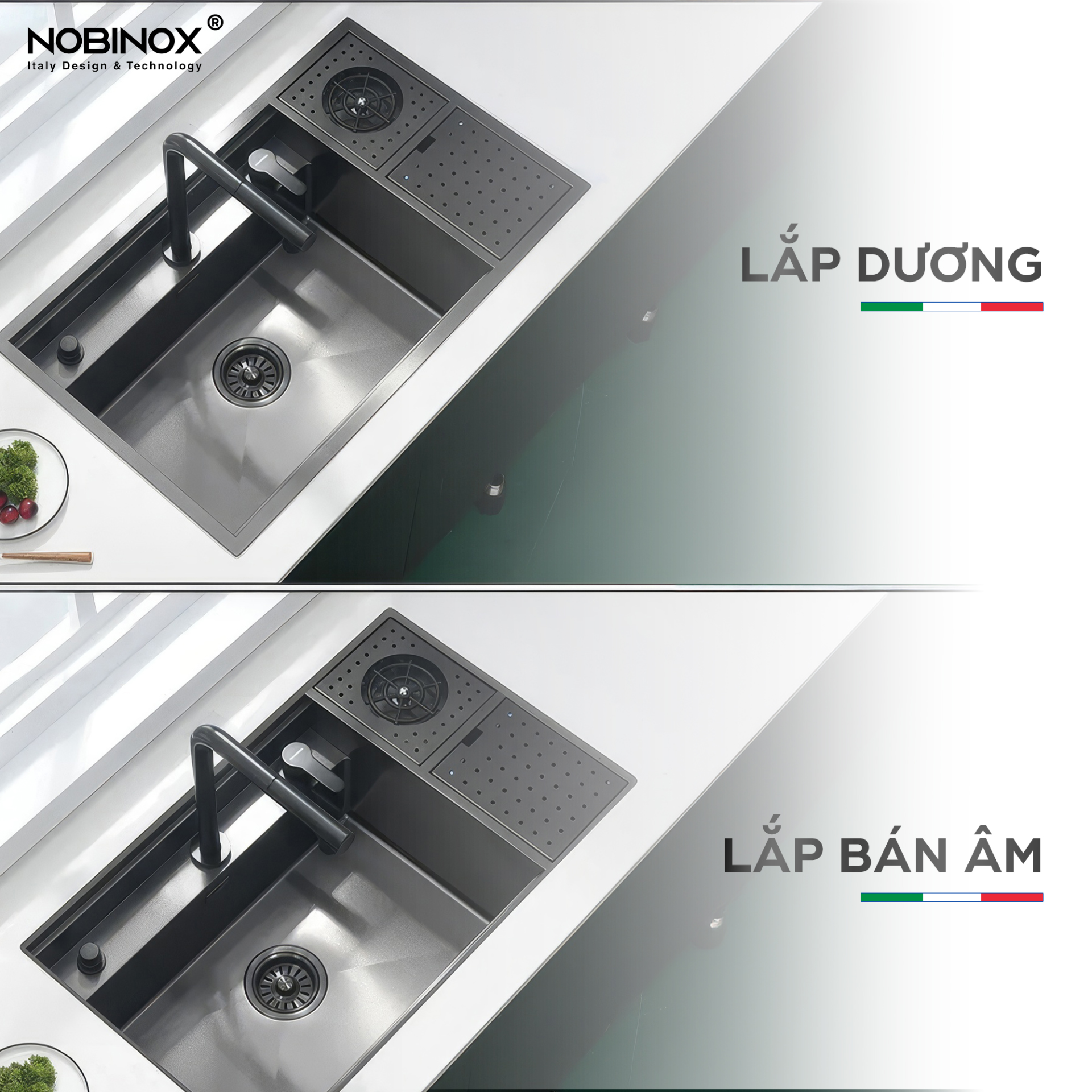 👉 Tạo điểm nhấn mạnh mẽ cho gian bếp với Chậu Rửa Bát Lumia NJ510B / NJ511B – inox PVD đen sang trọng & bộ phụ kiện đồng bộ.