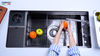 Tôn lên vẻ hiện đại và cá tính cho gian bếp với Lumia NJ510B / NJ511B – chậu inox AISI 304 PVD đen nhập khẩu với độ dày 3.0 + 1.2 mm. Hố sâu 230 mm giúp thao tác rửa dễ dàng, không văng nước.