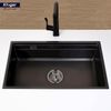 Chậu rửa bát 1 hố nano đen cao cấp kèm vòi 8161FB-S76 Bề mặt đen phủ Linen của chậu rửa bát K600 tạo ra sự tương phản nổi bật so với trang trí căn bếp xung quanh, mang đến một cảm giác sang trọng. Những đường nét dứt khoát và thẩm mỹ tối giản của K600 góp phần vào vẻ ngoại hình hấp dẫn và gọn gàng, nâng cao phong cách hiện đại tổng thể của không gian.